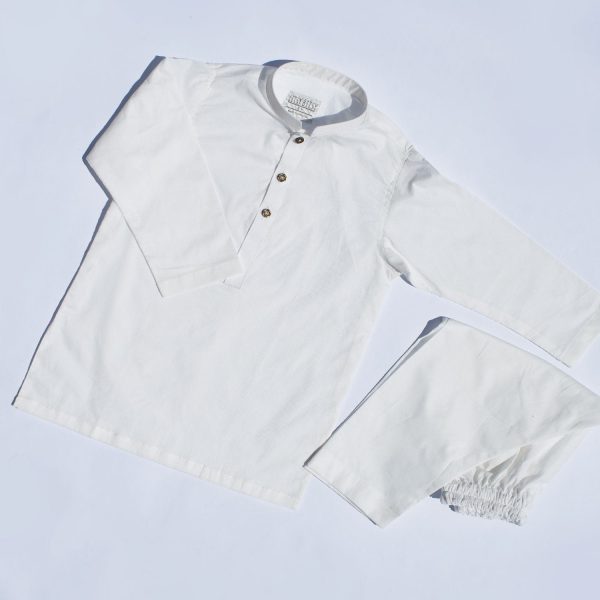 Gender:Â Boyn Category:Â Clothingn Outfit Type:Â Easternn Sub-Category:Â Kurta Setn Bottom Style:Â Straight Trousern Color Type:Â Whiten Number of Pieces:Â 2 Piecen Product Type:Â Daily/Basic Wearn Season:Â Summer Wearn