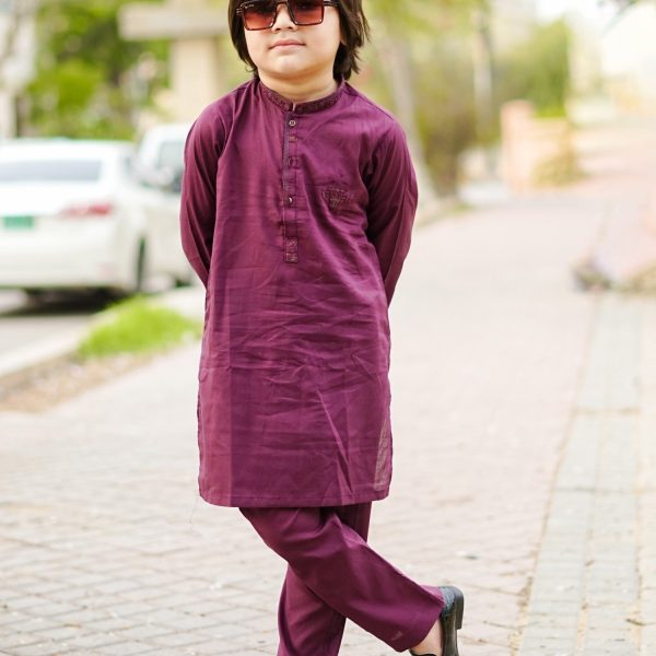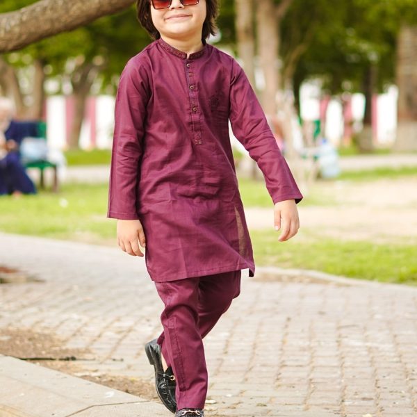 Gender:Â Boyn Category:Â Clothingn Outfit Type:Â Easternn Sub-Category:Â Kurta Setn Bottom Style:Â Straight Trousern Color Type:Â Mauven Number of Pieces:Â 2 Piecen Product Type:Â Daily/Basic Wearn Season:Â Summer Wearn