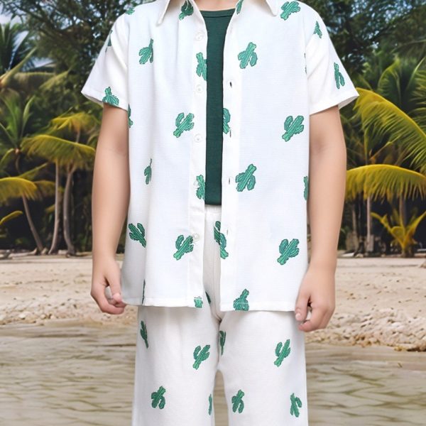 Gender:Â Boyn Category:Â Clothingn Outfit Type:Â Westernn Sub-Category:Â Casual Shirtn Color Type:Â Whiten Fabric:Â Georgetten Number of Pieces:Â 3 Piece – Top + Bottom + Outerwearn Product