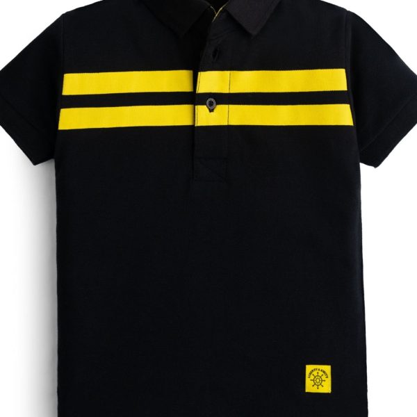 Gender:Â Boyn Category:Â Clothingn Outfit Type:Â Westernn Sub-Category:Â Polo Shirtn Color Type:Â Blackn Fabric:Â Cottonn Number of Pieces:Â 1 Piecen Season:Â Summer Wearn Additional Description:Â This sleek black polo