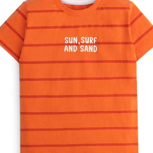 Gender:Â Boyn Category:Â Clothingn Outfit Type:Â Westernn Sub-Category:Â T Shirtn Color Type:Â Orangen Fabric:Â Single Jersey Knitn Number of Pieces:Â 1 Piecen Season:Â Summer Wearn Additional Description:Â A vibrant