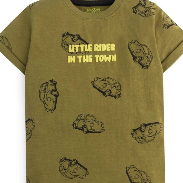 Gender:Â Boyn Category:Â Clothingn Outfit Type:Â Westernn Sub-Category:Â T Shirtn Color Type:Â Olive Greenn Fabric:Â Single Jersey Knitn Number of Pieces:Â 1 Piecen Season:Â Summer Wearn Additional Description:Â An