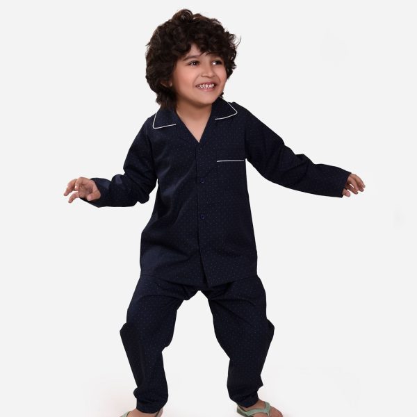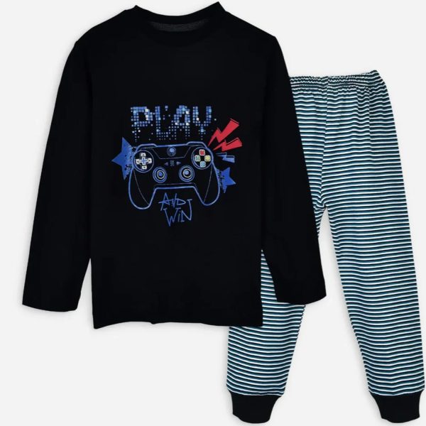Gender:Â Boyn Category:Â Inner and Sleepwearn Outfit Type:Â Pajama Setn Color Type:Â Blackn Fabric:Â Cottonn Number of Pieces:Â 2 Piecen Additional Description:Â Get your little one ready