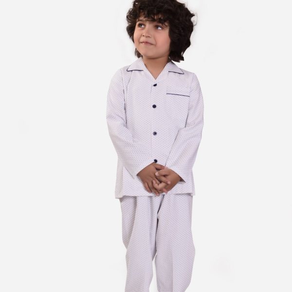 Gender:Â Boyn Category:Â Inner and Sleepwearn Outfit Type:Â Pajama Setn Color Type:Â Whiten Fabric:Â Cottonn Number of Pieces:Â 2 Piecen Disclaimer:Â Actual product color may vary slightly