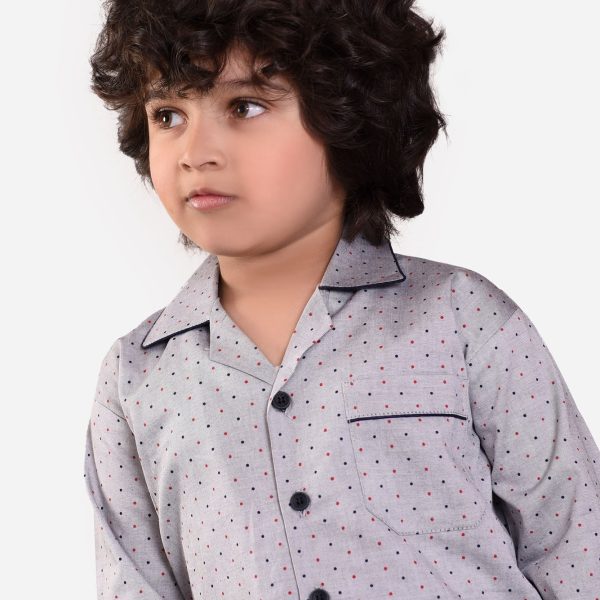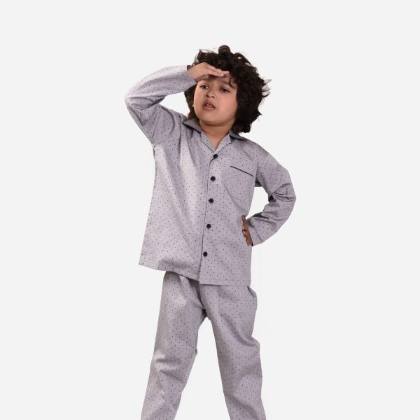 Gender:Â Boyn Category:Â Inner and Sleepwearn Outfit Type:Â Pajama Setn Color Type:Â Greyn Fabric:Â Cottonn Number of Pieces:Â 2 Piecen Disclaimer:Â Actual product color may vary slightly