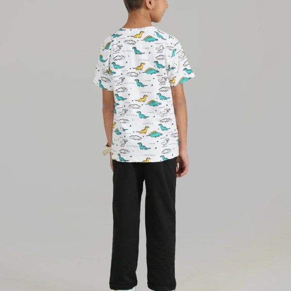 Gender:Â Boyn Category:Â Inner and Sleepwearn Outfit Type:Â Pajama Setn Color Type:Â Whiten Fabric:Â Cottonn Number of Pieces:Â 2 Piecen Additional Description:Â Refresh their basics collection with