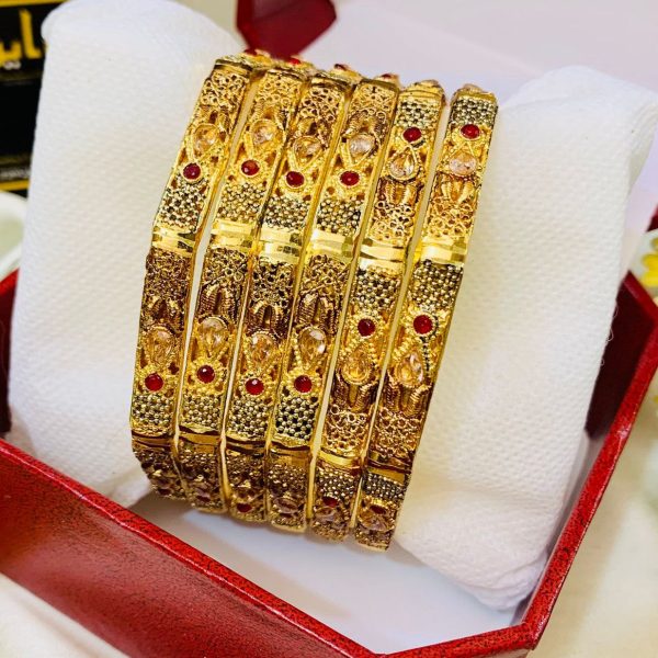 Gender:Â Girln Category:Â Accessoriesn Outfit Type:Â Jewelryn Sub-Category:Â Banglesn Color Type:Â Maroonn Number of Pieces:Â 6 Piecen Additional Description:Â Rawayat Bangles-116 Set of 6 BanglesnnSizes 2.4(2),2.6 (Sawa