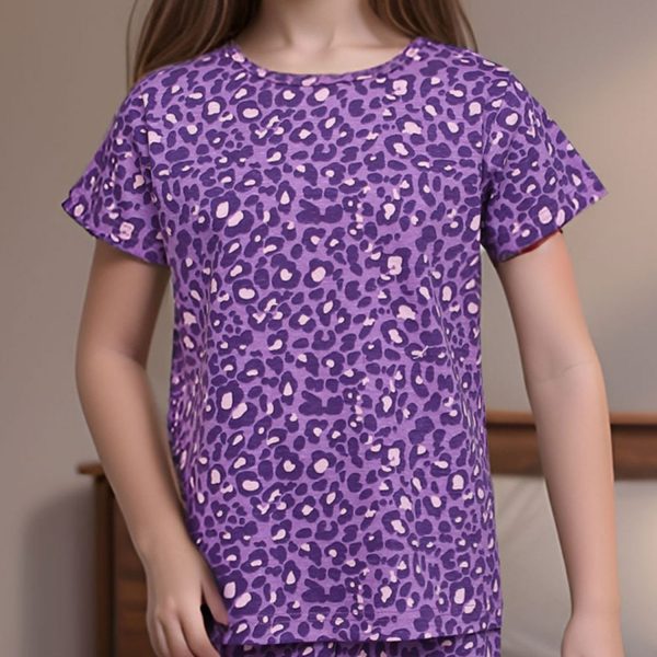 Gender:Â Girln Category:Â Inner and Sleepwearn Outfit Type:Â Pajama Setn Color Type:Â Purplen Fabric:Â Single Jersey Knitn Number of Pieces:Â 2 Piecen Additional Description:Â 2 PiecenFully PrintednShort