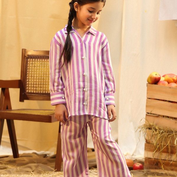 Gender:Â Girln Category:Â Inner and Sleepwearn Outfit Type:Â Pajama Setn Color Type:Â Pinkn Fabric:Â Swiss Lawnn Number of Pieces:Â 2 Piecen Additional Description:Â DESCRIPTIONn2 PiecenFully PrintednFull SleevesnElasticized