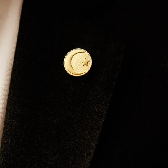 Gender:Â Menn Category:Â Accessoriesn Outfit Type:Â Lapel Pinn Color Type:Â Goldn Additional Description:Â The Gold Chand Sitara Lapel Pin is a striking accessory crafted from