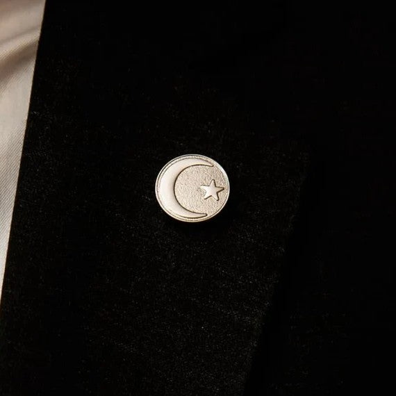 Gender:Â Menn Category:Â Accessoriesn Outfit Type:Â Lapel Pinn Color Type:Â Silvern Additional Description:Â This White Gold Rhodium Chand Sitara Lapel Pin is a striking accessory