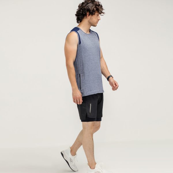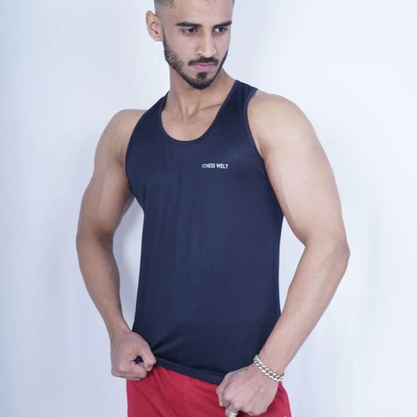Gender:Â Menn Category:Â Clothingn Outfit Type:Â Activewearn Sub-Category:Â Tank Topn Color Type:Â Dark Bluen Fabric:Â Polyestern Number of Pieces:Â 1 Piecen Additional Description:Â High quality customized fabric