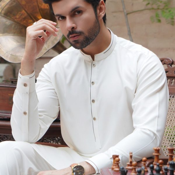 Gender:Â Menn Category:Â Clothingn Outfit Type:Â Easternn Sub-Category:Â Kurta Setn Bottom Style:Â Straight Trousern Color Type:Â Ivoryn Fabric:Â Cotton Silkn Number of Pieces:Â 2 Piece – Top &