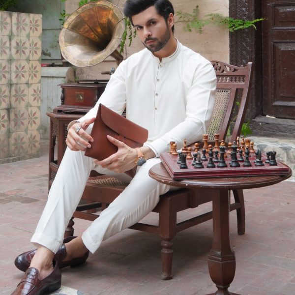 Gender:Â Menn Category:Â Clothingn Outfit Type:Â Easternn Sub-Category:Â Kurta Setn Bottom Style:Â Straight Trousern Color Type:Â Beigen Fabric:Â Lawnn Number of Pieces:Â 2 Piece – Top & Bottomn