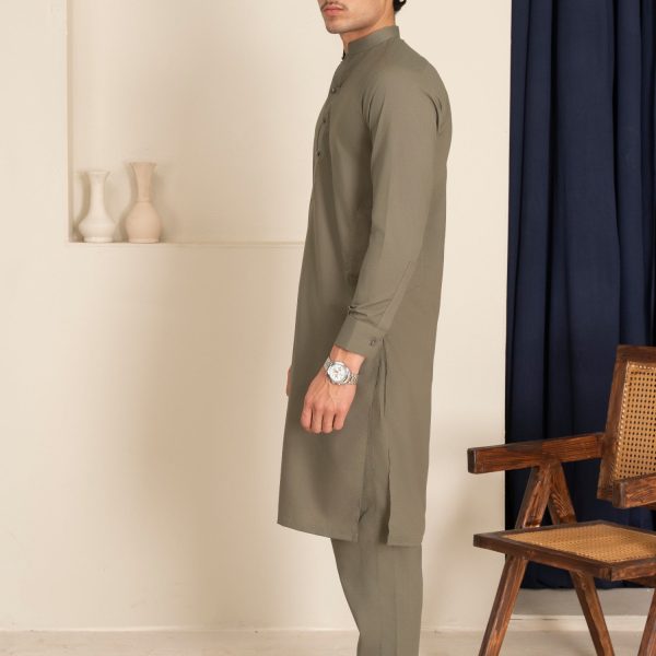 Gender:Â Menn Category:Â Clothingn Outfit Type:Â Easternn Sub-Category:Â Kurta Setn Bottom Style:Â Straight Trousern Color Type:Â Olive Greenn Fabric:Â Wash & Wearn Number of Pieces:Â 2 Piece –