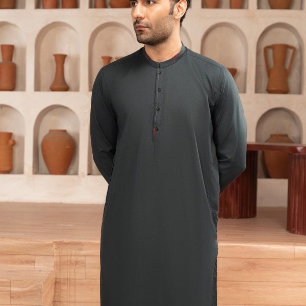 Gender:Â Menn Category:Â Clothingn Outfit Type:Â Easternn Sub-Category:Â Shalwar Kameezn Bottom Style:Â Straight-Legn Color Type:Â Dark Greyn Fabric:Â Wash & Wearn Number of Pieces:Â 2 Piece – Top