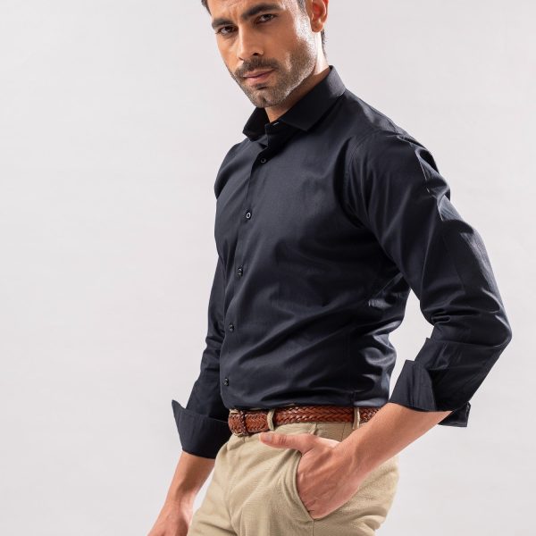 Gender:Â Menn Category:Â Clothingn Outfit Type:Â Westernn Sub-Category:Â Formal Shirtn Color Type:Â Blackn Fabric:Â Cottonn Number of Pieces:Â 1 Piecen Season:Â Summer Wearn Top Fit:Â Slim Fitn Additional Description:Â The