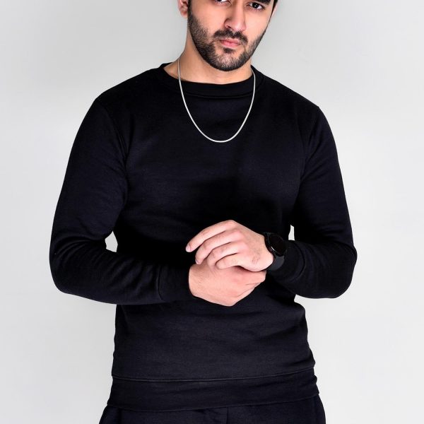 Gender:Â Menn Category:Â Clothingn Outfit Type:Â Westernn Sub-Category:Â Sweatshirtn Color Type:Â Jet Blackn Fabric:Â Fleecen Number of Pieces:Â 2 Piece – Top & Bottomn Season:Â Winter Wearn Top