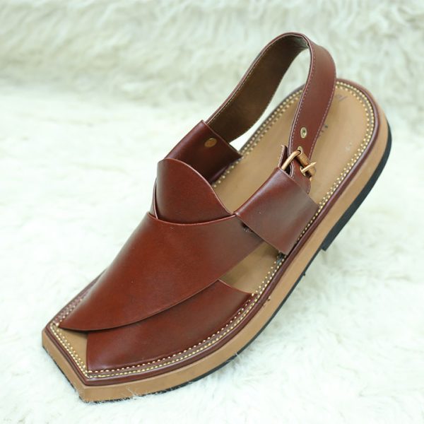 Gender:Â Menn Category:Â Footwearn Outfit Type:Â Peshawri Chappaln Color Type:Â Brownn Sole Material:Â Rubbern Top Material:Â Leathern Additional Description:Â Khaais Provides Kaptan which is made from soft