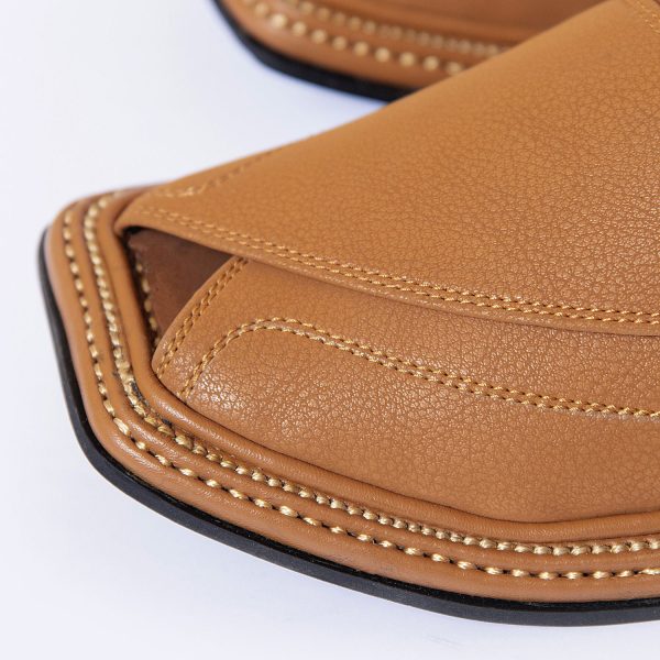 Gender:Â Menn Category:Â Footwearn Outfit Type:Â Peshawri Chappaln Color Type:Â Camel Brownn Sole Material:Â PUn Top Material:Â Leathern Additional Description:Â Gender: MennnCategory: FootwearnnOutfit Type: Peshawri ChappalnnColor Type: