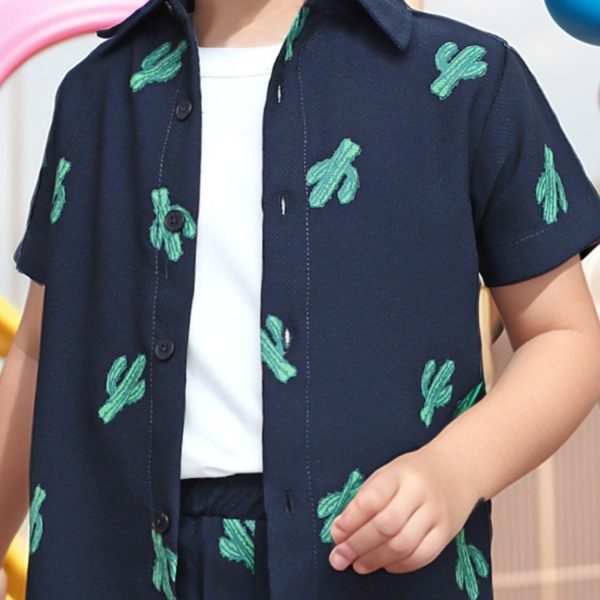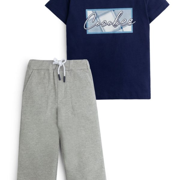 Gender:Â Boyn Category:Â Clothingn Outfit Type:Â Westernn Sub-Category:Â T Shirtn Color Type:Â Dark Bluen Fabric:Â Cottonn Number of Pieces:Â 2 Piecen Season:Â Summer Wearn Additional Description:Â This trendy two-piece