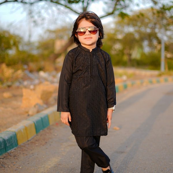 Gender:Â Boyn Category:Â Clothingn Outfit Type:Â Easternn Sub-Category:Â Kurta Setn Bottom Style:Â Straight Trousern Color Type:Â Jet Blackn Number of Pieces:Â 2 Piecen Product Type:Â Daily/Basic Wearn Season:Â Summer