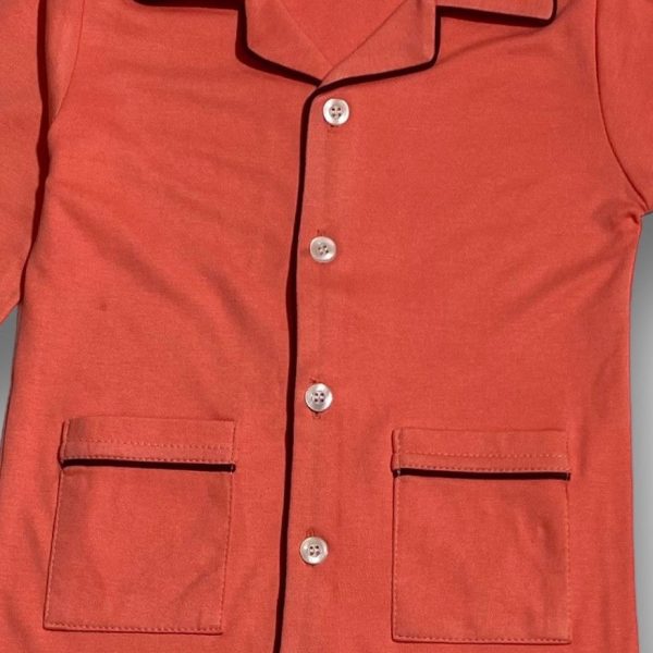 Gender:Â Boyn Category:Â Inner and Sleepwearn Outfit Type:Â Pajama Setn Color Type:Â Orangen Fabric:Â Cottonn Number of Pieces:Â 2 Piece – Top & Bottomn Disclaimer:Â Actual product