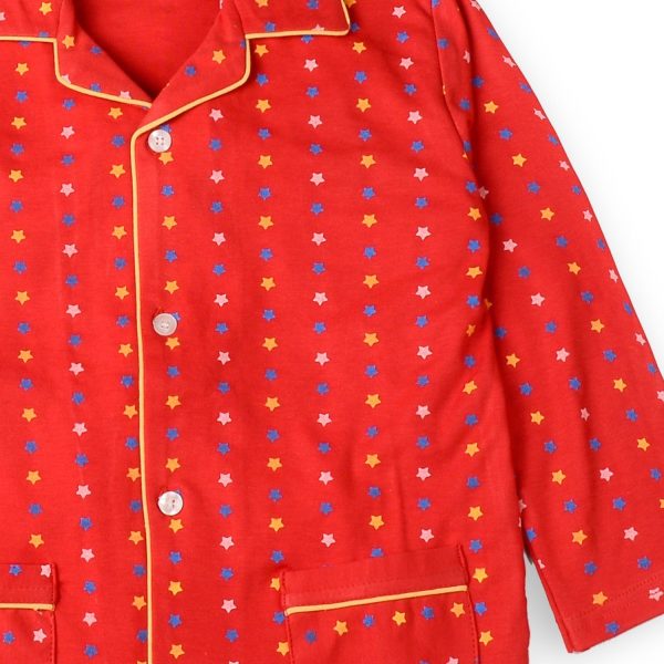 Gender:Â Boyn Category:Â Inner and Sleepwearn Outfit Type:Â Pajama Setn Color Type:Â Redn Fabric:Â Cottonn Number of Pieces:Â 2 Piece – Top & Bottomn Disclaimer:Â Actual product