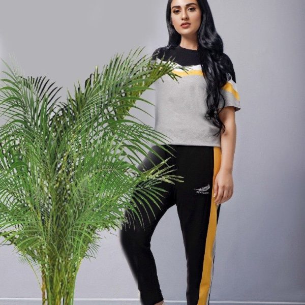 Gender:Â Womenn Category:Â Clothingn Outfit Type:Â Activewearn Sub-Category:Â Tracksuitn Color Type:Â Greyn Fabric:Â Single Jersey Knitn Number of Pieces:Â 2 Piecen Product Type:Â Daily/Basic Wearn Season:Â Summer Wearn Additional