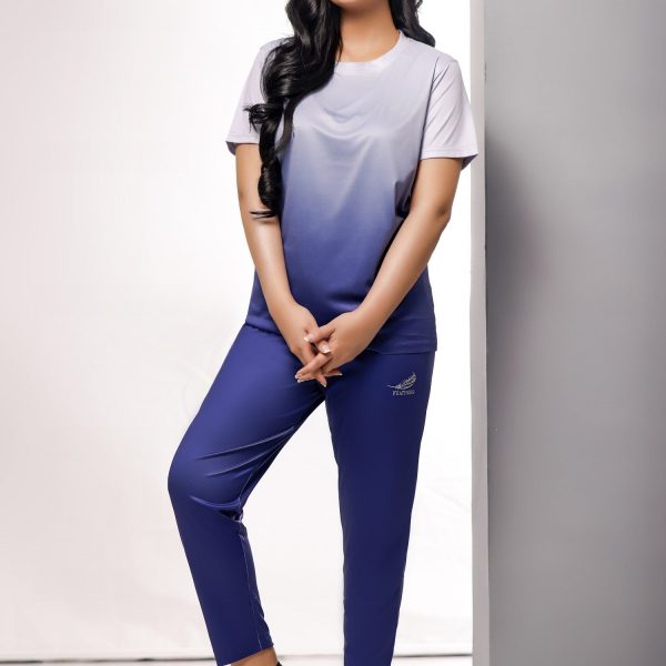 Gender:Â Womenn Category:Â Clothingn Outfit Type:Â Activewearn Sub-Category:Â Tracksuitn Color Type:Â Bluen Fabric:Â Single Jersey Knitn Number of Pieces:Â 2 Piecen Product Type:Â Daily/Basic Wearn Season:Â Summer Wearn Additional