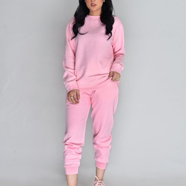 Gender:Â Womenn Category:Â Clothingn Outfit Type:Â Activewearn Sub-Category:Â Tracksuitn Color Type:Â Pinkn Fabric:Â Fleecen Number of Pieces:Â 2 Piece – Top & Bottomn Product Type:Â Daily/Basic Wearn Season:Â Winter