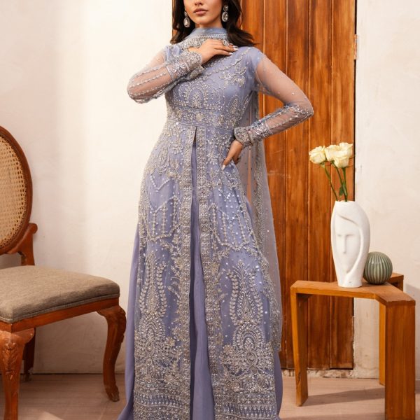 Gender:Â Womenn Category:Â Clothingn Outfit Type:Â Eastern Ready to wearn Sub-Category:Â Lehengan Bottom Style:Â Flared Lehengan Color Type:Â Steal Greyn Dupatta Fabrics:Â Netn Number of Pieces:Â 3 Piece