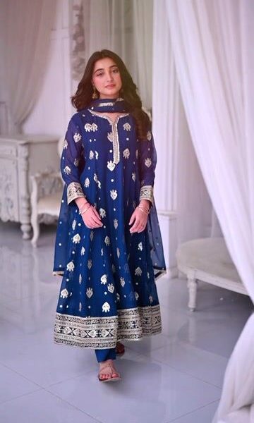 Gender:Â Womenn Category:Â Clothingn Outfit Type:Â Eastern Ready to wearn Sub-Category:Â Pishwasn Color Type:Â Bluen Lining Attached:Â As shown in Picturen Number of Pieces:Â 3 Piece –