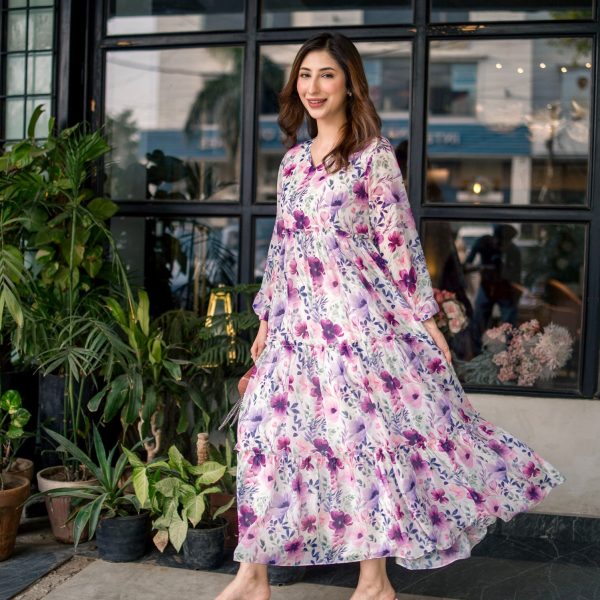 Gender:Â Womenn Category:Â Clothingn Outfit Type:Â Fusionn Sub-Category:Â Maxin Color Type:Â Lilacn Number of Pieces:Â 1 Piece – Topn Season:Â All Seasonn Shirt Fabrics:Â Chiffonn Top Style:Â Flared Maxin