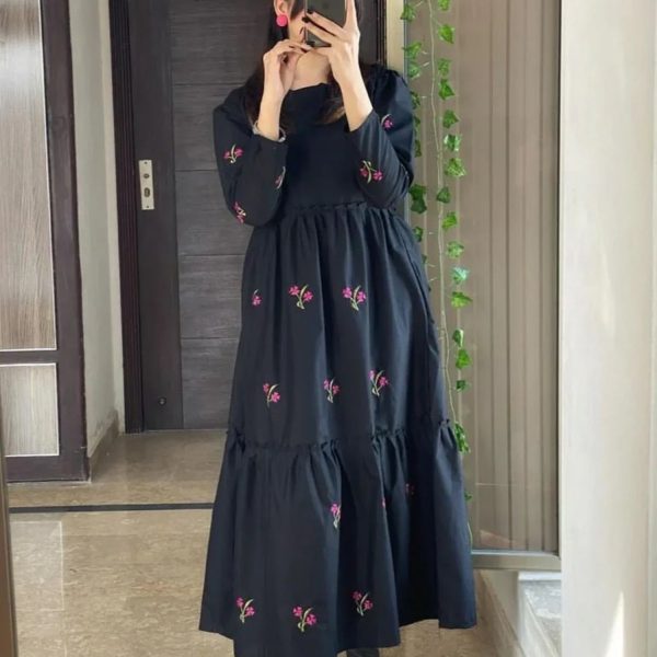 Coco 1-Piece Embroidered Cotton Long Frock for Women
