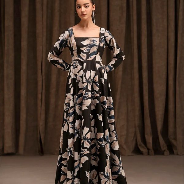 Gender:Â Womenn Category:Â Clothingn Outfit Type:Â Fusionn Sub-Category:Â Maxin Color Type:Â Blackn Number of Pieces:Â 1 Piece – Topn Season:Â Summer Wearn Shirt Fabrics:Â Poly Lawnn Top Style:Â Flared