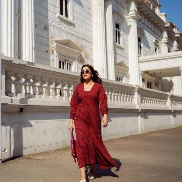 Gender:Â Womenn Category:Â Clothingn Outfit Type:Â Fusionn Sub-Category:Â Maxin Color Type:Â Maroonn Number of Pieces:Â 1 Piece – Topn Season:Â Summer Wearn Shirt Fabrics:Â Chikankari Cottonn Top Style:Â A-Line