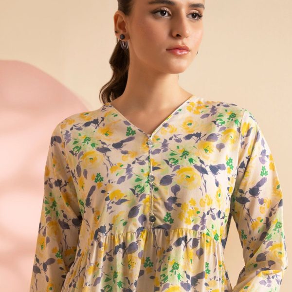 Gender:Â Womenn Category:Â Clothingn Outfit Type:Â Fusionn Sub-Category:Â Maxin Color Type:Â Yellown Number of Pieces:Â 1 Piece – Topn Season:Â Summer Wearn Shirt Fabrics:Â Lawnn Top Style:Â Straight Cut