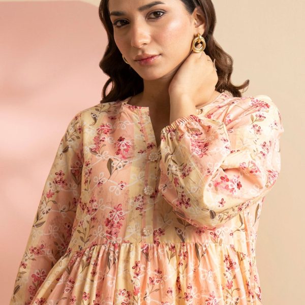 Gender:Â Womenn Category:Â Clothingn Outfit Type:Â Fusionn Sub-Category:Â Maxin Color Type:Â Peach Orangen Number of Pieces:Â 1 Piece – Topn Season:Â Summer Wearn Shirt Fabrics:Â Lawnn Top Style:Â Straight