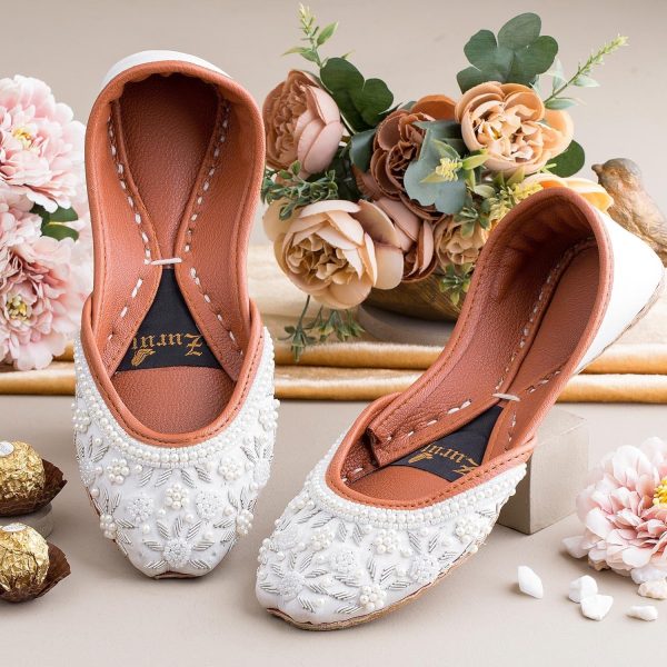 Gender:Â Womenn Category:Â Footwearn Outfit Type:Â Khussan Color Type:Â Whiten Sole Material:Â Leathern Top Material:Â Silkn Additional Description:Â Zun-125 is a quintessential exemplary of pleasant, luxurious and
