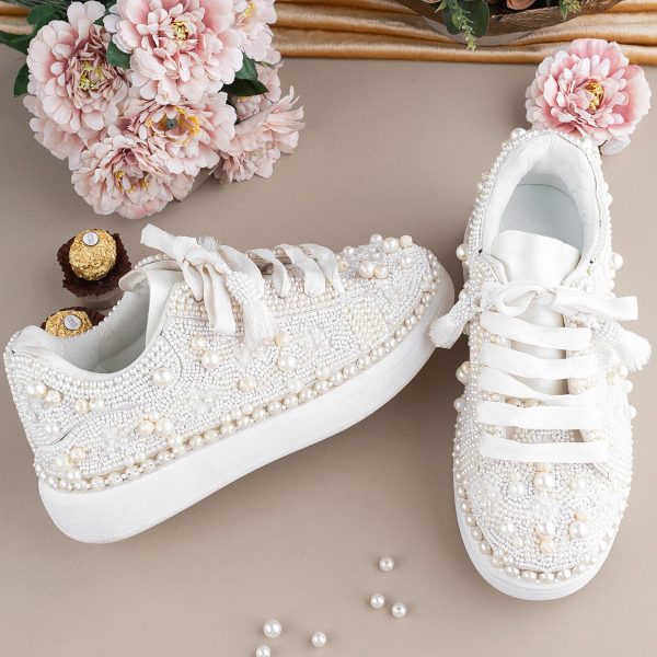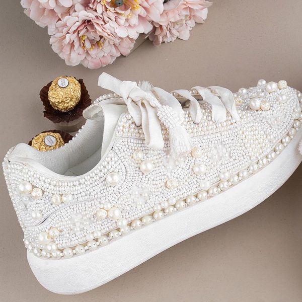 Gender:Â Womenn Category:Â Footwearn Outfit Type:Â Sneakersn Color Type:Â Whiten Sole Material:Â Leathern Top Material:Â Silkn Additional Description:Â ZURUJ’s latest collection of Make to order bridal shoes,