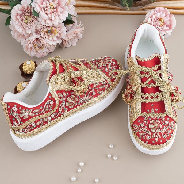 Gender:Â Womenn Category:Â Footwearn Outfit Type:Â Sneakersn Color Type:Â Redn Sole Material:Â Leathern Top Material:Â Silkn Additional Description:Â ZURUJ’s latest collection of Make to order bridal shoes,