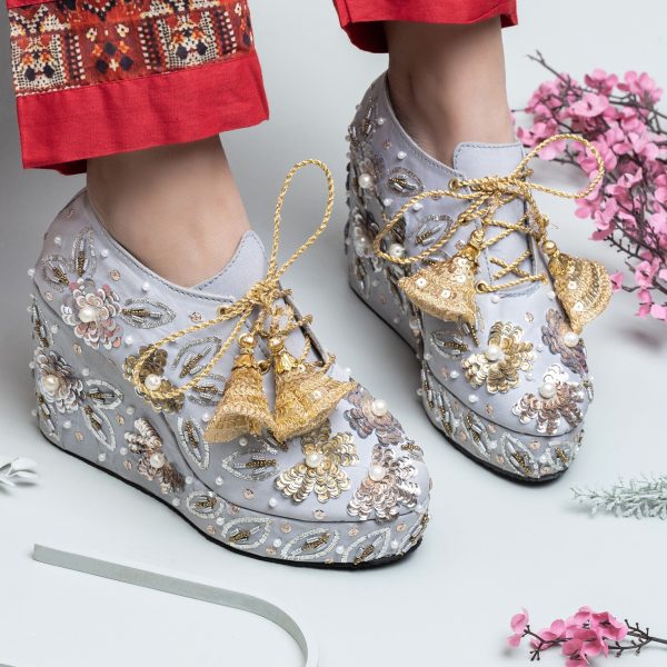 Gender:Â Womenn Category:Â Footwearn Outfit Type:Â Sneakersn Color Type:Â Silvern Sole Material:Â Leathern Top Material:Â Silkn Additional Description:Â THE WEDDING EPISODEnnBecome cool and crazy Bride that does