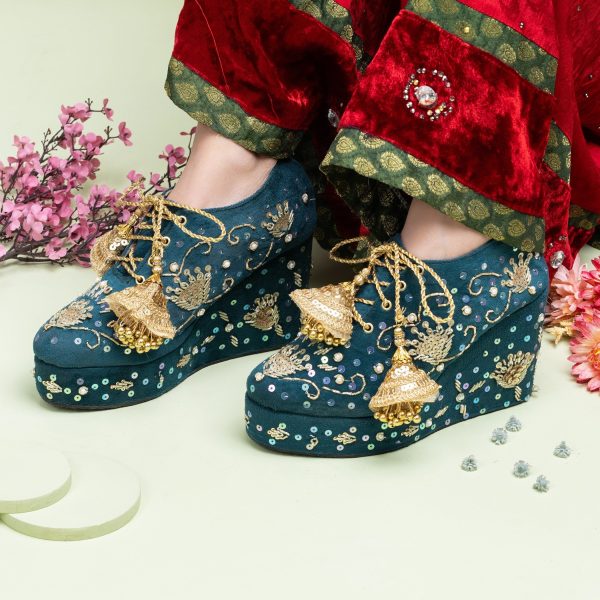 Gender:Â Womenn Category:Â Footwearn Outfit Type:Â Sneakersn Color Type:Â Greenn Sole Material:Â Leathern Top Material:Â Silkn Additional Description:Â THE WEDDING EPISODEnnBecome cool and crazy Bride that does