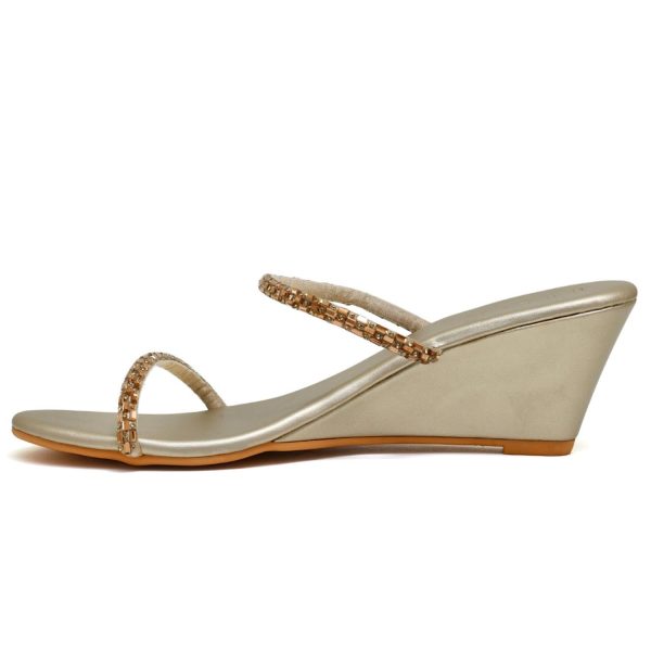 Gender: Womenn Category: Footwearn Outfit Type: Wedgesn Color Type: Mari Goldn Sole Material: PUn Top Material: Rexinen Disclaimer: Actual product color may vary slightly