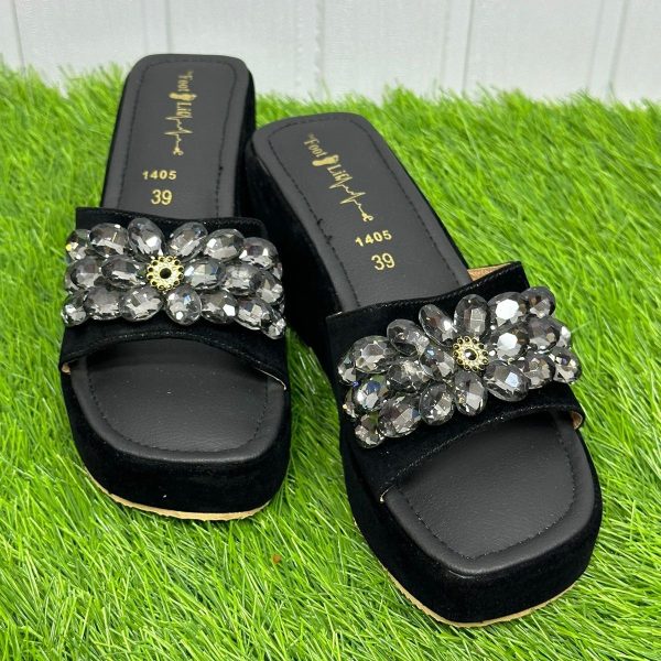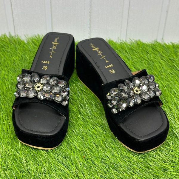 Gender: Womenn Category: Footwearn Outfit Type: Wedgesn Color Type: Blackn Sole Material: Leathern Top Material: Velvetn Additional Description: BOX HEEL BLACK Heel Height – 3 inchesn Disclaimer: Actual
