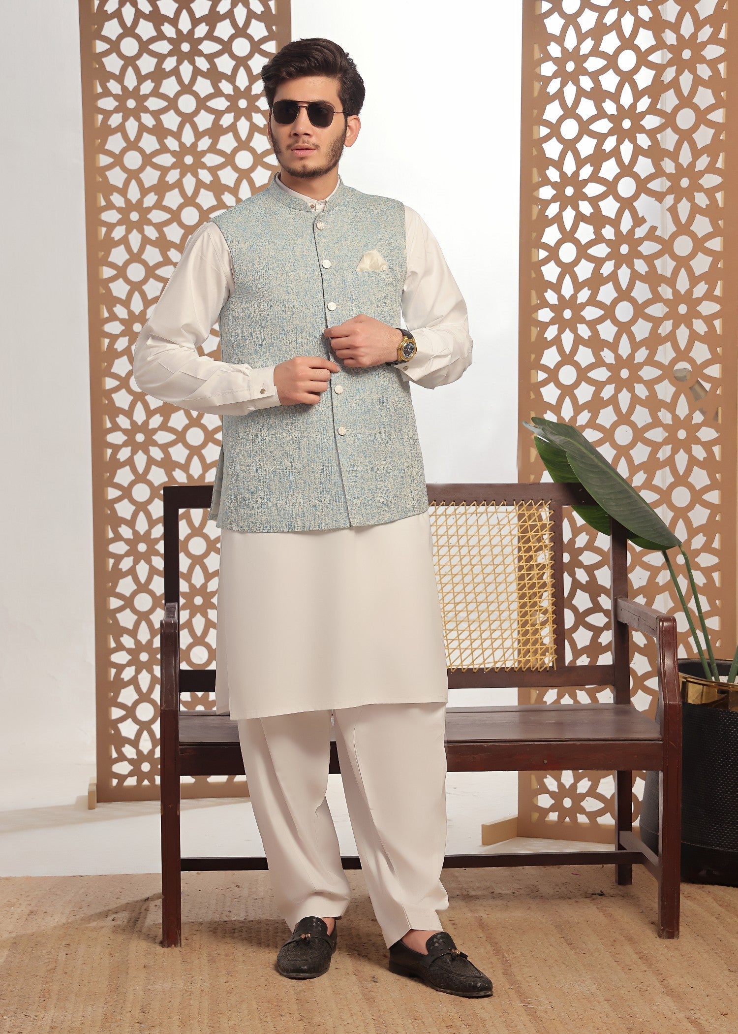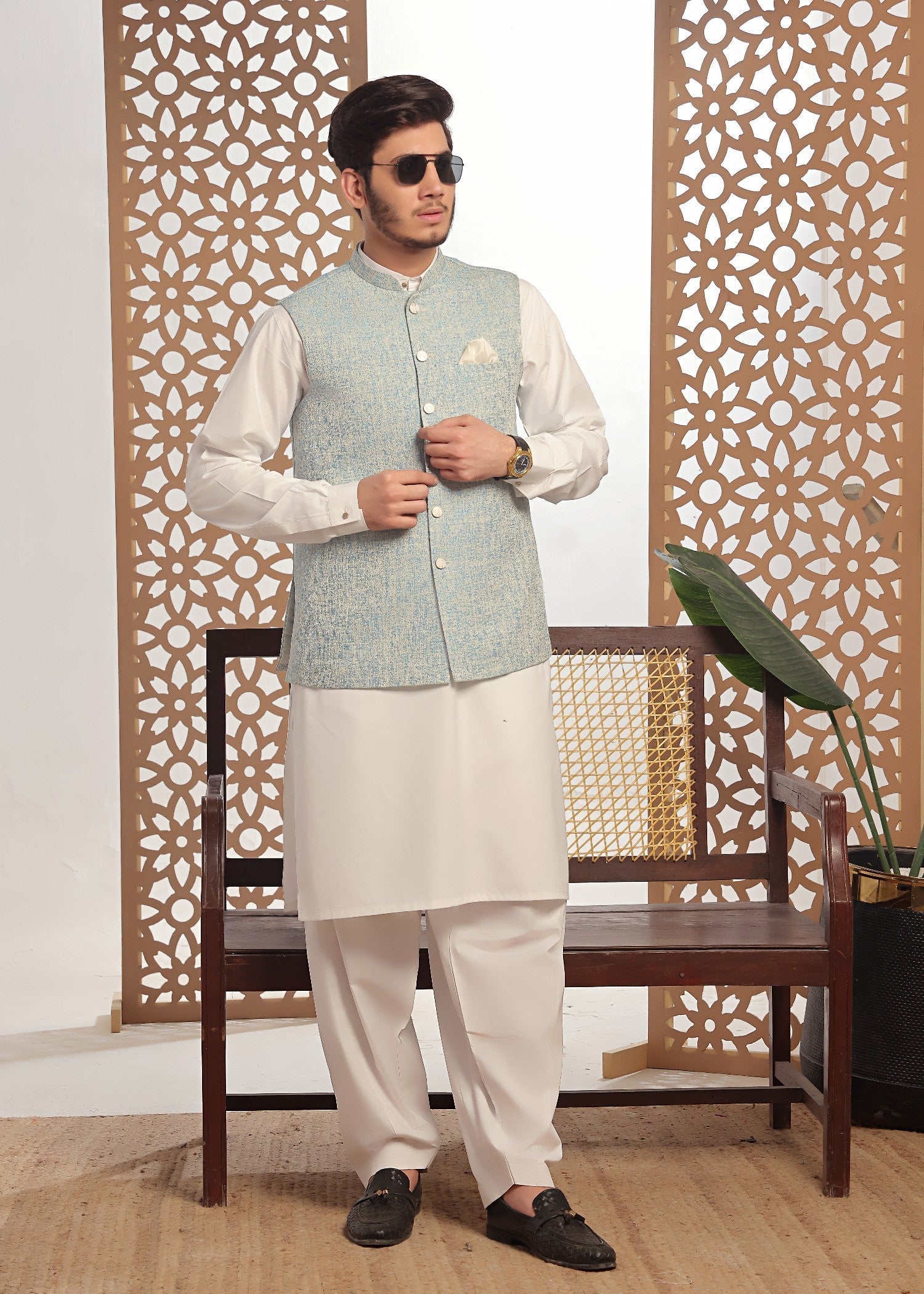 Gender:Â Menn Category:Â Clothingn Outfit Type:Â Easternn Sub-Category:Â Waistcoatn Color Type:Â Creamn Fabric:Â Raw Silkn Number of Pieces:Â 1 Piece – Outerwearn Product Type:Â Festive/Party Wearn Season:Â All Seasonn