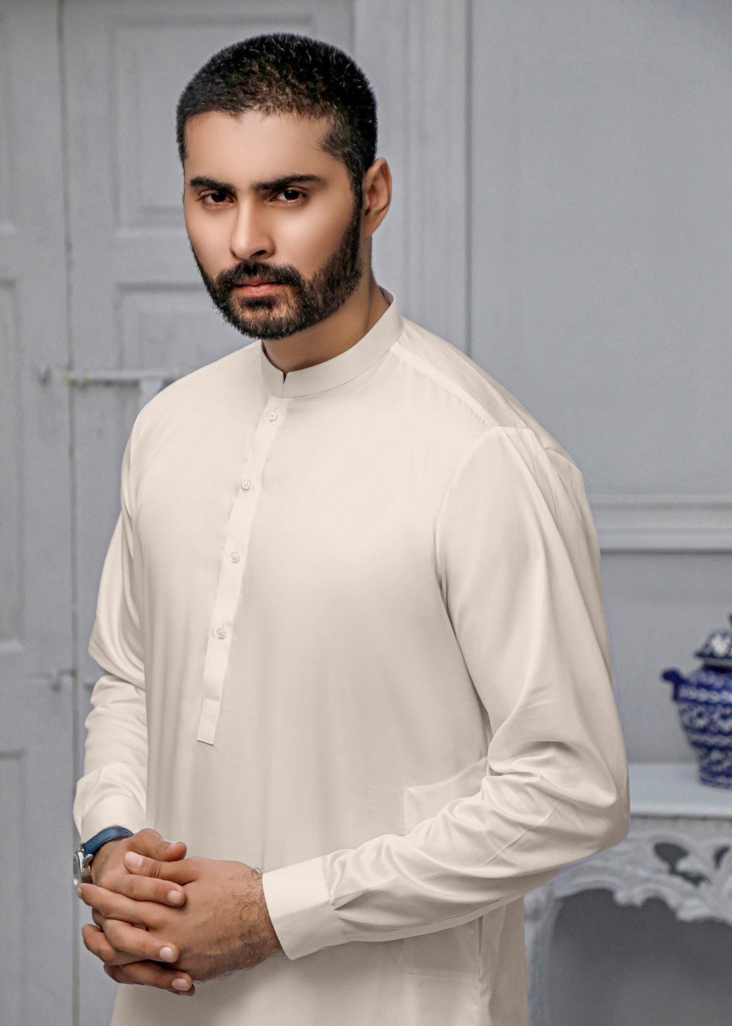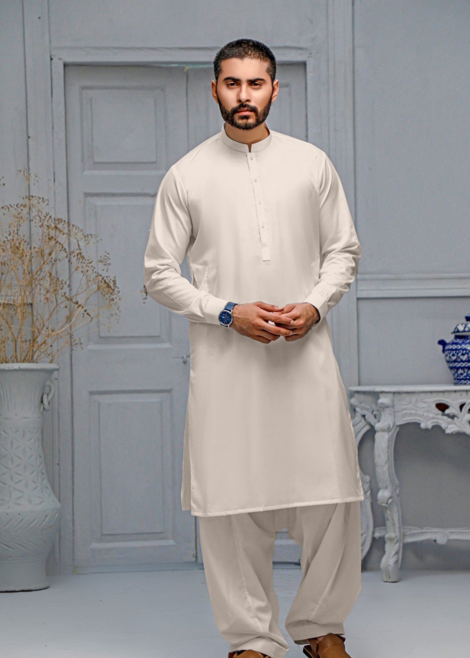 Gender:Â Menn Category:Â Clothingn Outfit Type:Â Easternn Sub-Category:Â Kurta Setn Bottom Style:Â Straight Trousern Color Type:Â Ivoryn Fabric:Â Cotton Silkn Number of Pieces:Â 2 Piece – Top &