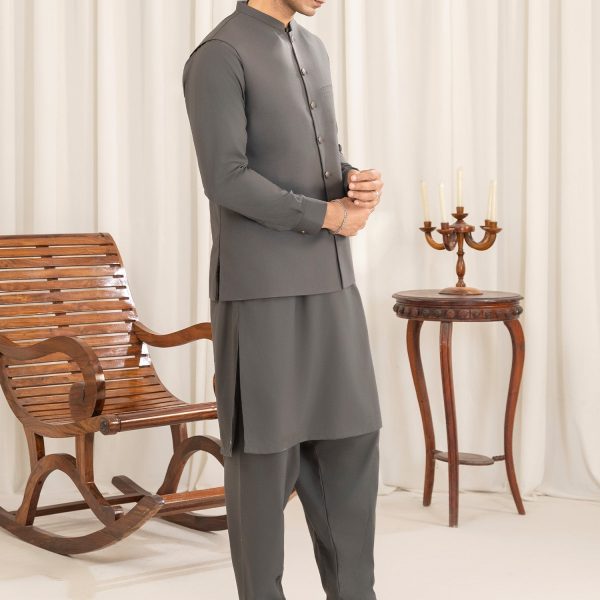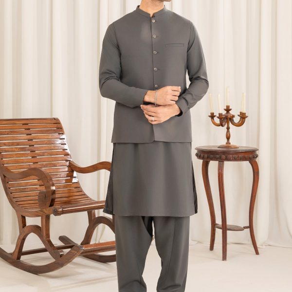 Gender:Â Menn Category:Â Clothingn Outfit Type:Â Easternn Sub-Category:Â Waistcoatn Color Type:Â Greyn Fabric:Â Wash & Wearn Number of Pieces:Â 3 Piece – Top + Bottom + Outerwearn