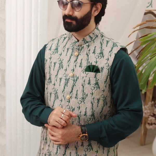 Gender:Â Menn Category:Â Clothingn Outfit Type:Â Easternn Sub-Category:Â Waistcoatn Color Type:Â Greenn Fabric:Â Suitingn Number of Pieces:Â 3 Piece – Top + Bottom + Outerwearn Product Type:Â Festive/Party